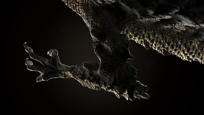 I wanted to challenge myself to create an old dragon that looked in good spirits. It has curly tousled hair and a flowing beard. The mouth full of sharp teeth is half-open, and the facial expression is majestic and menacing. I am delighted to design its extended corners so branches and rocks are mixed. The body twisting and the overall stance started with polyline pipes, which ended up in what I found to be more satisfying. For the back and tail of the dragon, I used a similar sculpting technique to the head. Honestly, I enjoy the shape that looks like rocks or cliffs. Next, I learned how to make brushes for scales and divide them organically on the body. The dragon carving steps in Keita Okada's Artworks & Making Book gave me excellent guidance and help during the Zbrush process. I learned a lot from it.